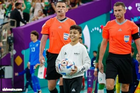 الطفل تميم يقدم كرة المونديال في لقاء الأخضر والمكسيك