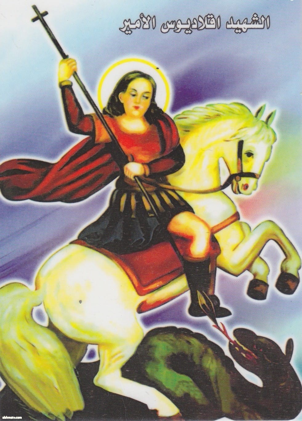 وأضاف غالي ان الشخصية الرئيسة هي شخصية امير فارس كان محبوباً من جميع أهل إنطاكية لحسن صورته وشجاعته ولمحبتهم له عملوا له صورة وعلقوها على باب مدينة إنطاكية ولما كفر «دقلديانوس» إمبراطور الرومان وأثار الاضطهاد على المسيحيين فأعلن الامير الاستشهاد من أجل اسم المسيح، واستحضره دقلديانوس وعرض عليه عبادة الأوثان ووعده أن يجعله مكان أبيه، فلم يلتفت «أقلاديوس» إلى وعوده وخاطبه بكل جرأة موبخا إياه على عبادته الأوثان فلم يجسر الملك على أن يمسه بأذى لمحبة الانطاكيين له فأشار عليه «الوزير رومانس» بإرساله إلى مصر ليقتل هناك فأرسله مصحوبا بكتاب إلى «والي مدينة أنصنا» بالصعيد يقول له فيه ان اقلاديوس لم يخضع لآمرنا ولا أذعن لقولنا فلاطفه بكل جهدك أولا فان لم يرجع عن رأيه فاقطع رأسه.