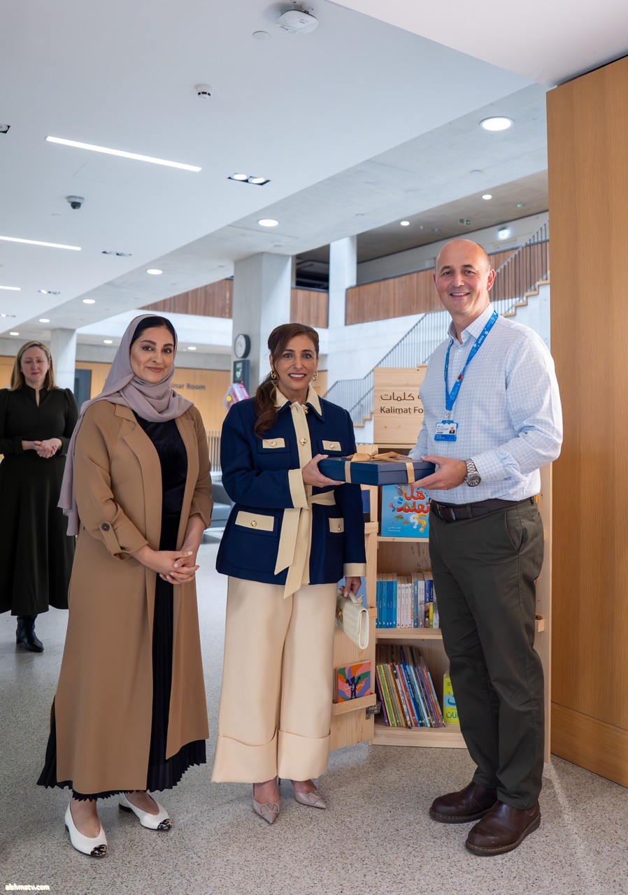 وتزامناً مع الزيارة، فقد قدمت "مؤسسة كلمات" مكتبة متنقلة للأطفال إلى مستشفى جريت أورموند ستريت ضمن مبادرة "تَبَنَّ مكتبة" التي أطلقتها المؤسسة. وتهدف المكتبة التي تضم 100 كتاب باللغتين العربية والانجليزية، إلى تنمية الابداع وحب الاستطلاع لدى الأطفال الذين يتلقون العلاج في المستشفى ونقلهم إلى عالم من الخيال والأحلام بعيداً عن واقعهم، لضمان راحتهم وإسعادهم.