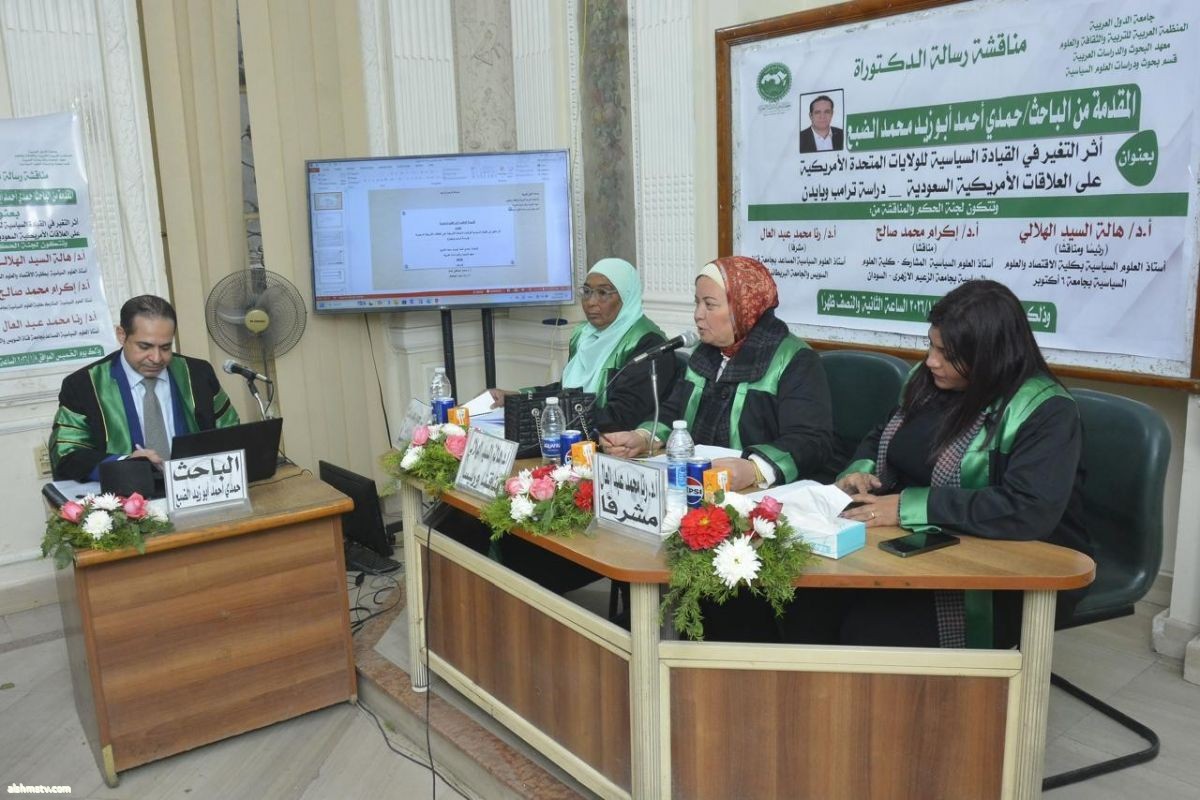 وجاءت رسالة الدكتوراه بعنوان:"أثر التغير في القيادة السياسية للولايات المتحدة الأمريكية على العلاقات الأمريكية السعودية (دراسة ترامب وبايدن) خلال الفترة من 2017 إلى 2025".